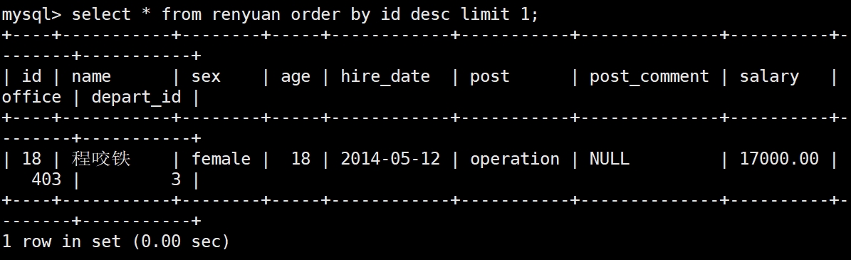 查看表的详细结构,可加\G,\G表示长格式展示。