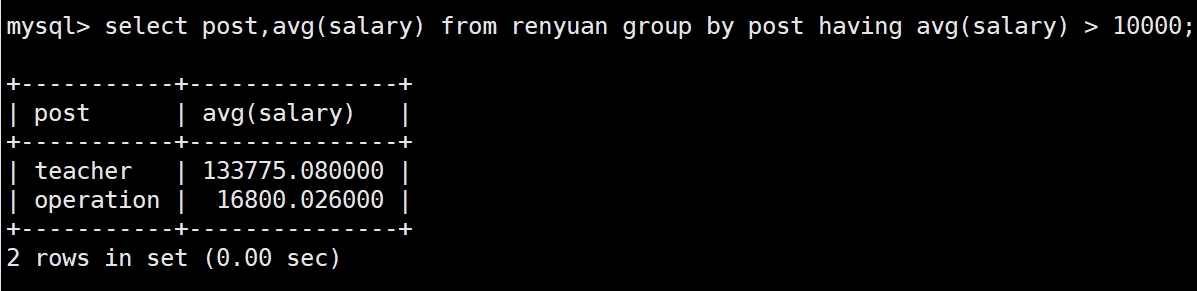 2.聚合函数:count()计数 avg()平均值 max()最大值