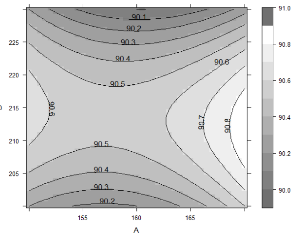 fit <-lm(X~A*B+I(A^2)*I(B^2)+A:I(B^2)+B:I(A^2),data=yield)