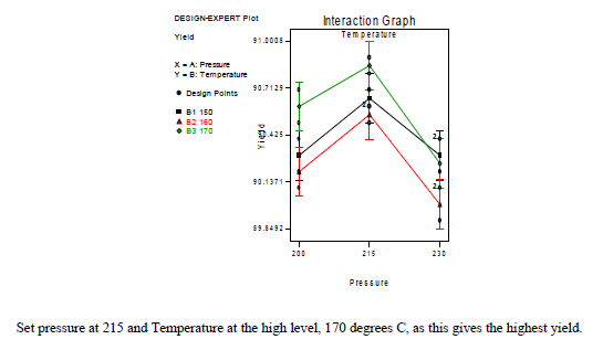with(battery,interaction.plot(yieldA,yieldB,yield$X,type="b",pch=19,fixed=T,xlab="Temperature (°F)",ylab="pressure"))