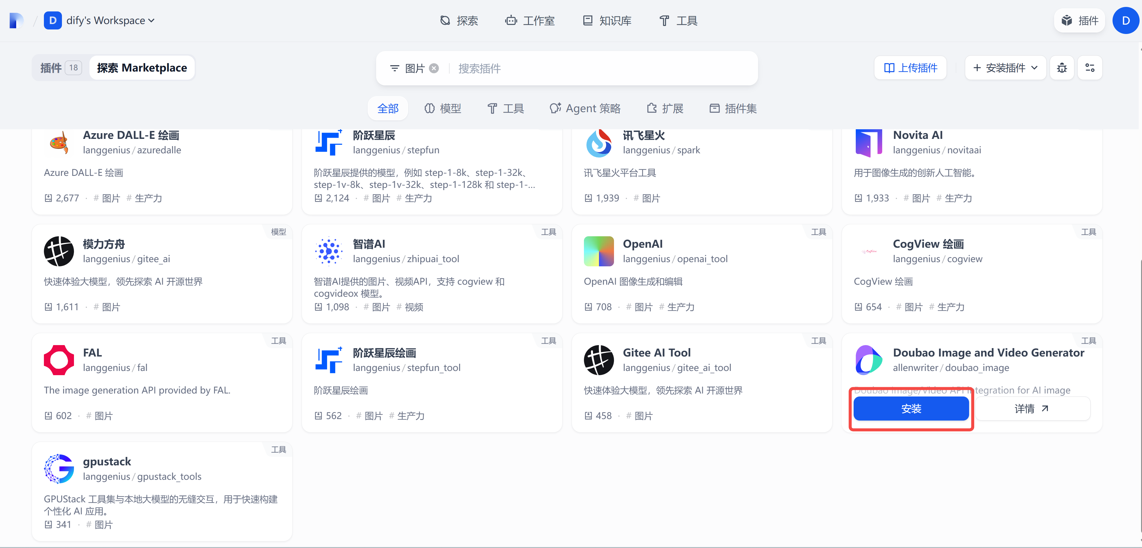 所谓"文生图"组件,指的是根据文字生成图片的组件(工具),Dify 中提供的和"图片"有关的插件如下: