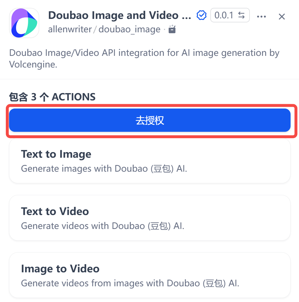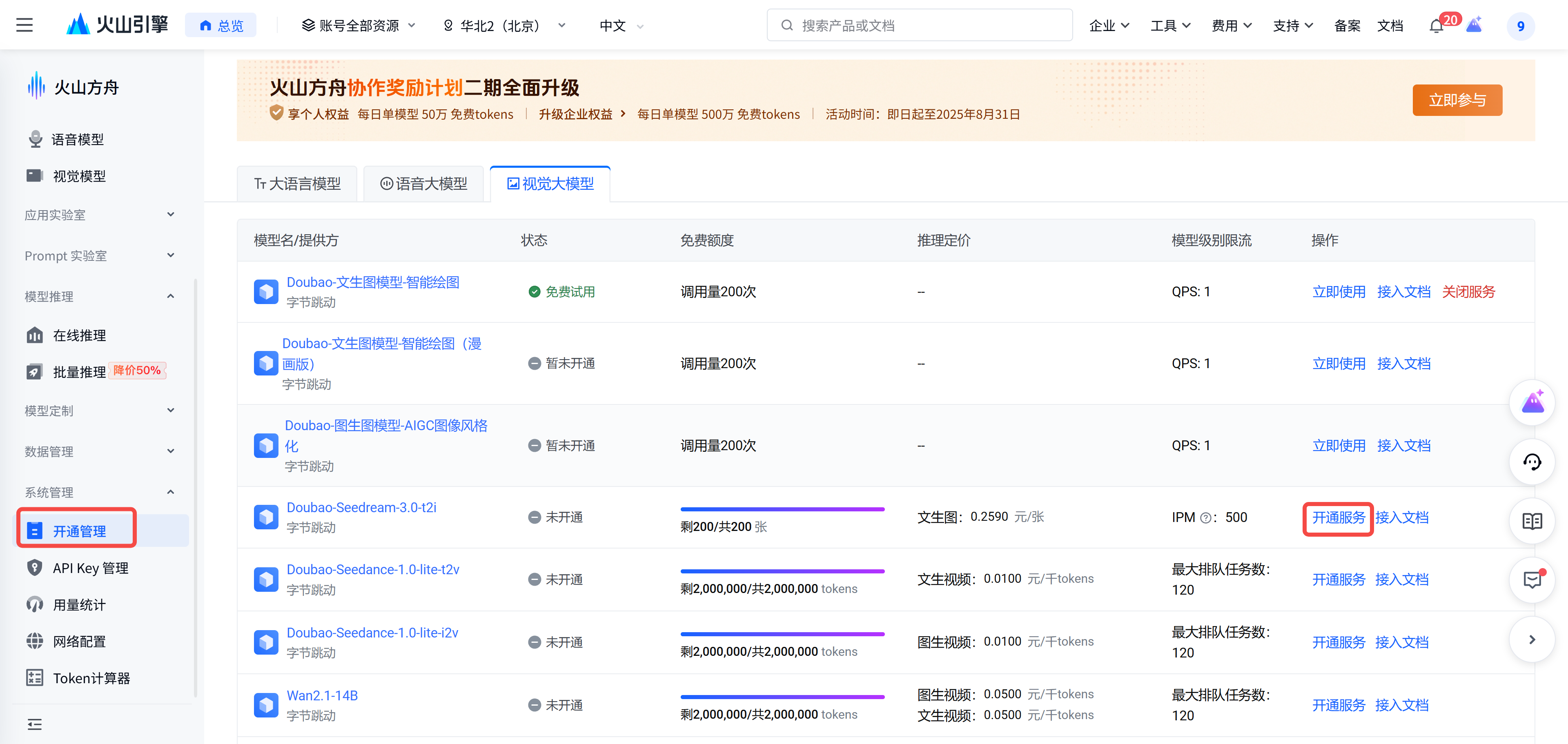 之后是去 Doubao 平台开通图片生成权限和添加生成 API Key,这两个步骤都很容易出错。