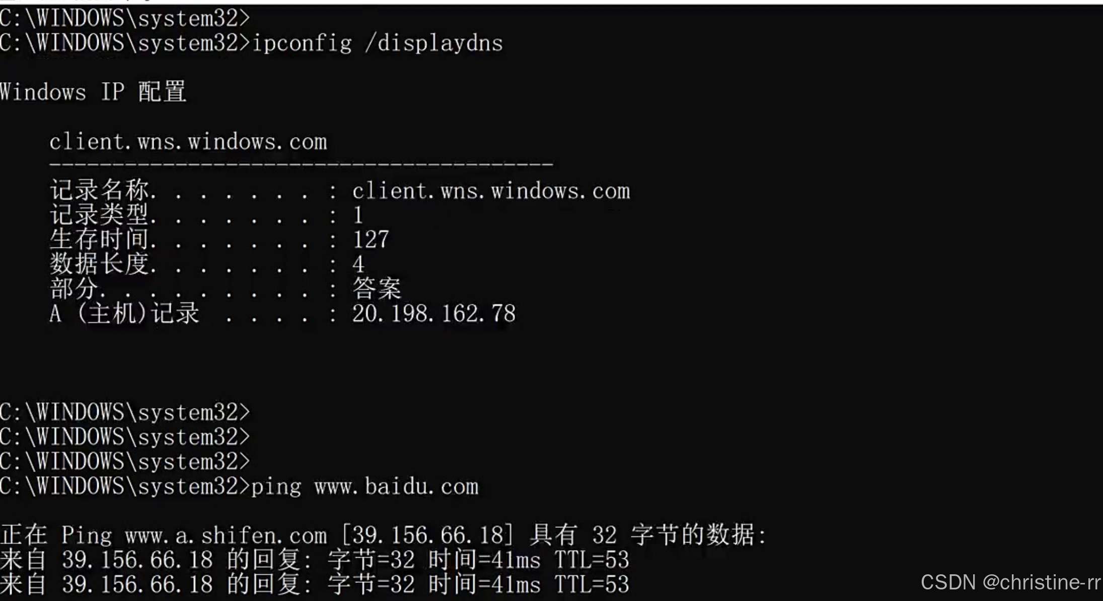 - 命令格式:ipconfig /displaydns