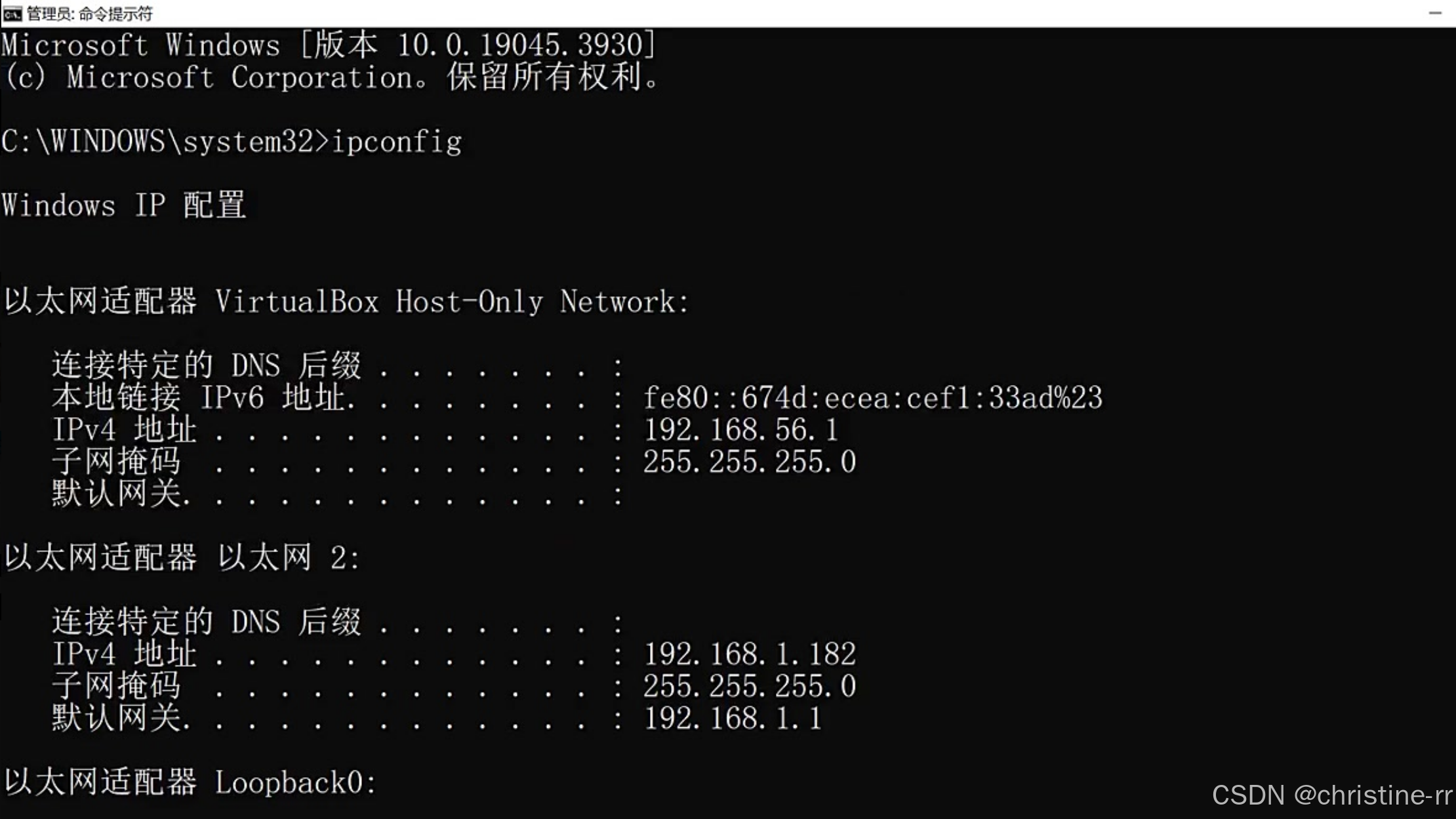 - 注意事项 :虚拟机会产生多个虚拟网卡,导致显示信息较多