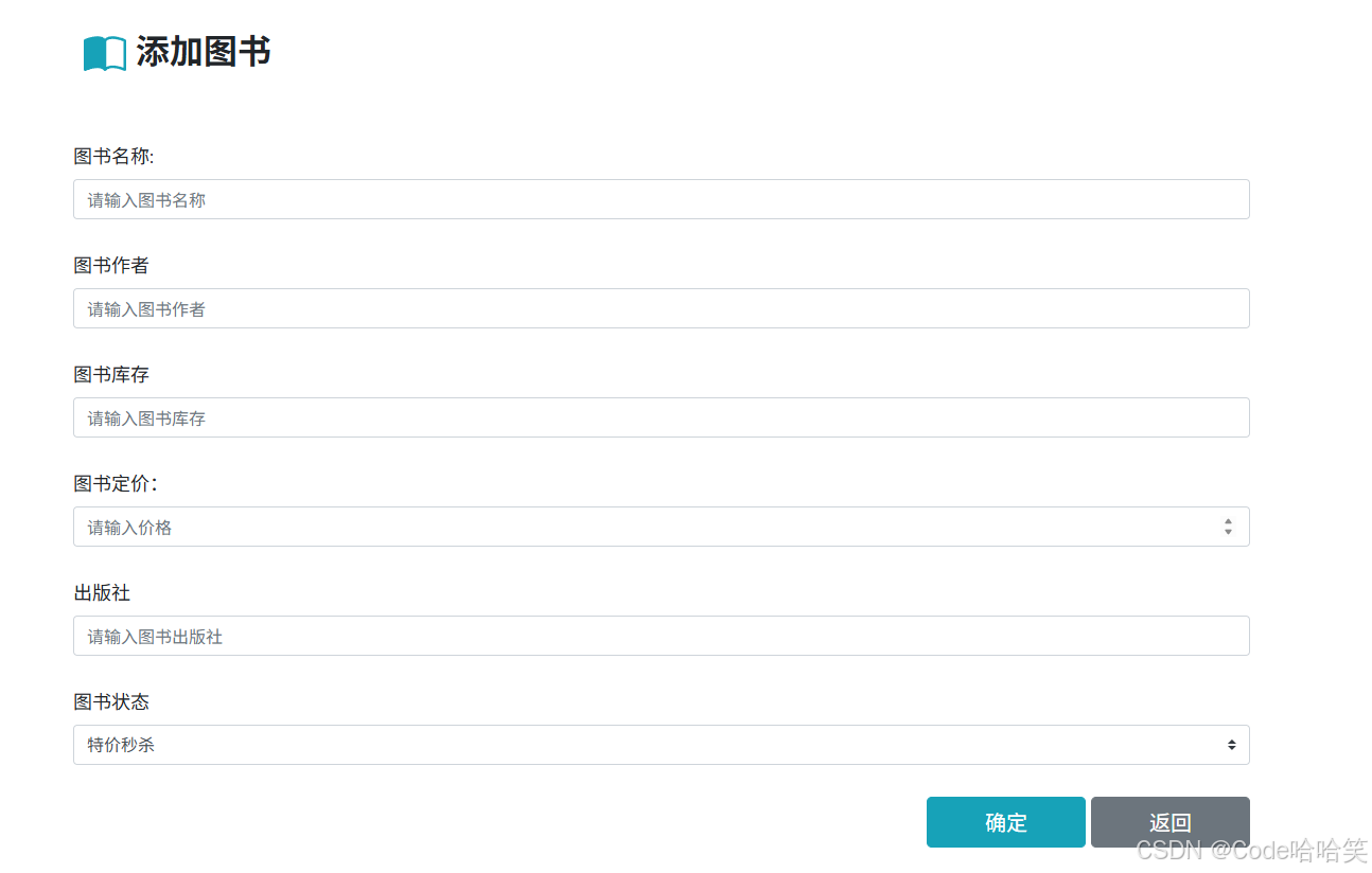 添加页面通过表单收集图书信息,点击确定按钮触发添加逻辑。