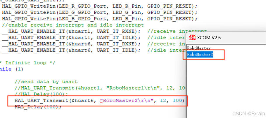 (3)在main函数的while循环中读取ADC值并通过串口发送数据,如图3所示。