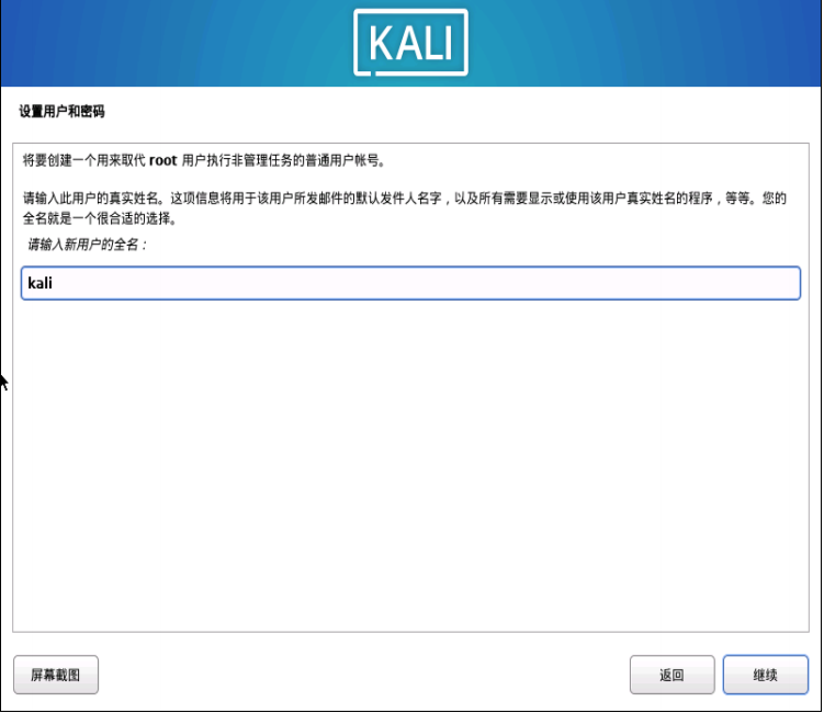 输入设置的用户名和密码,进入 kali