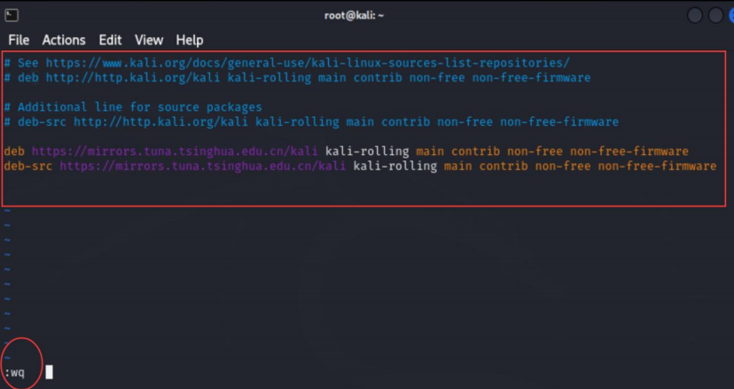 deb https://mirrors.tuna.tsinghua.edu.cn/kali kali-rolling main contrib non-free