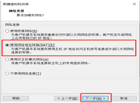 2.6 网络类型:选择 "使用网络地址转换(NAT)" ,点击 "下一步" 。