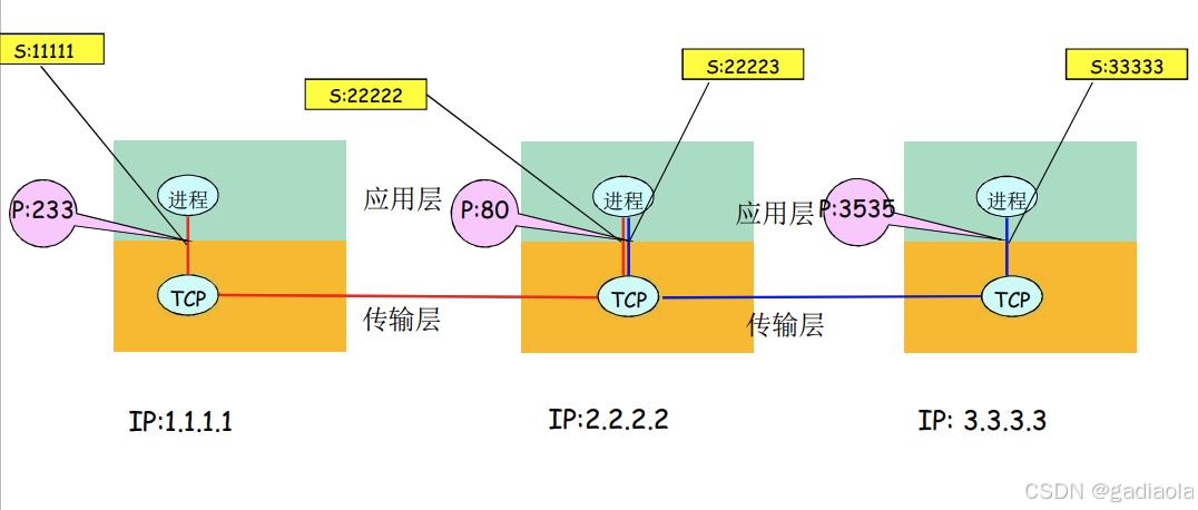 - 位置:层间界面的 SAP(TCP/IP:socket)