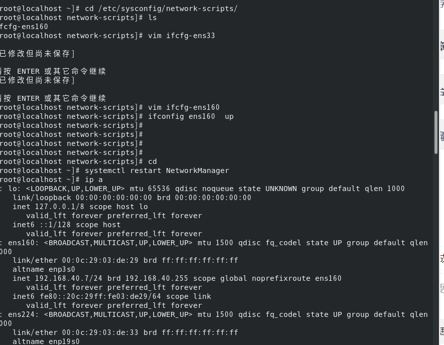 重启服务:systemctl restart network