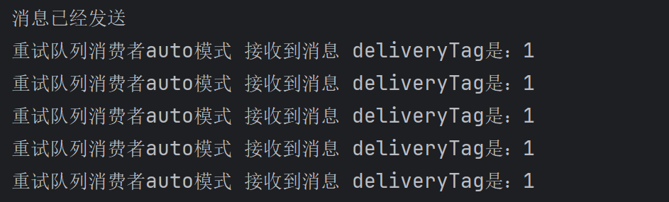 - 消息正确处理,自动确认消息,移除队列;如果处理失败,消息不会被移除,RabbitMQ会一直重发该消息直到处理成功(每次重试DeliveryTag会自增);如果一直处理失败,消息就会一直处于UnAck状态,导致消息积压。