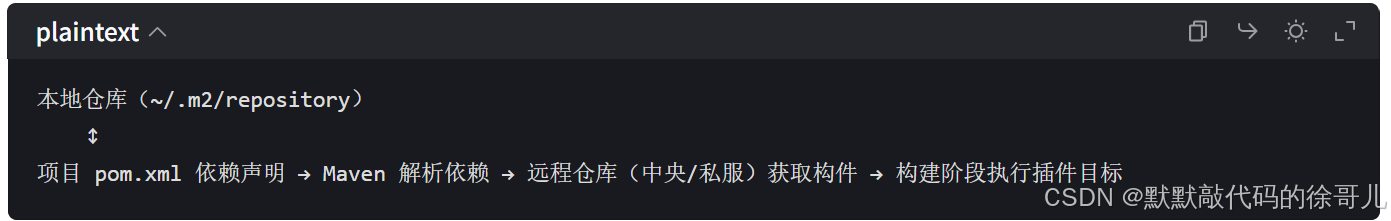 - Repository System:仓库系统,管理构件(Artifacts)的存储与获取,支持本地仓库、中央仓库及自定义远程仓库。