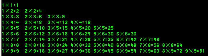 题目:输出9*9口诀(乘法表)。