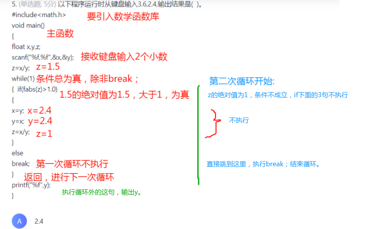fabs(a)>0.00001,大于精度就执行,如果第n项小于这个数了,就停止。实际执行上,第n项已经执行了,超过了0.00001这个精度。++do while循环是先执行再判断。++