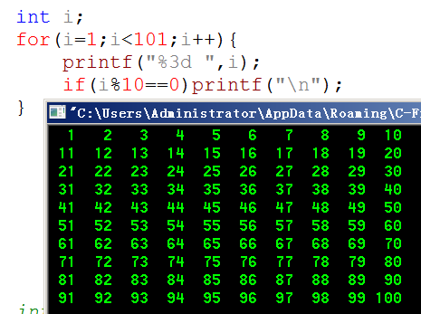 再比如矩阵输出1-100: