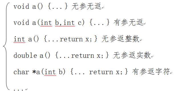 ++类型 函数名(参数){代码段;}++ 比如: