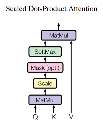 缩放点积注意力的执行流程图如下: