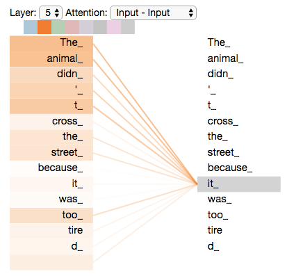 在翻译场景下,注意力机制用于实现英文到中文的翻译转换,自注意力则是完成序列内词义的确定, ,比如"The animal didn't cross the street because it was too tired",如何确定后面的it是指animal还是street呢?通过自注意力机制可确定it的翻译要重点关注animal。