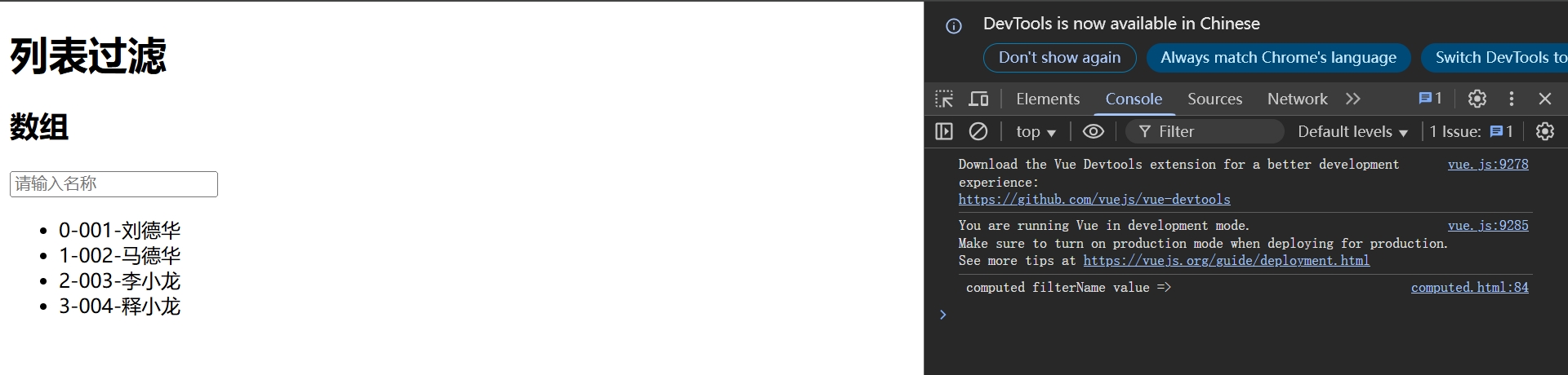 <input type="text" placeholder="请输入名称" v-model="filterName" />