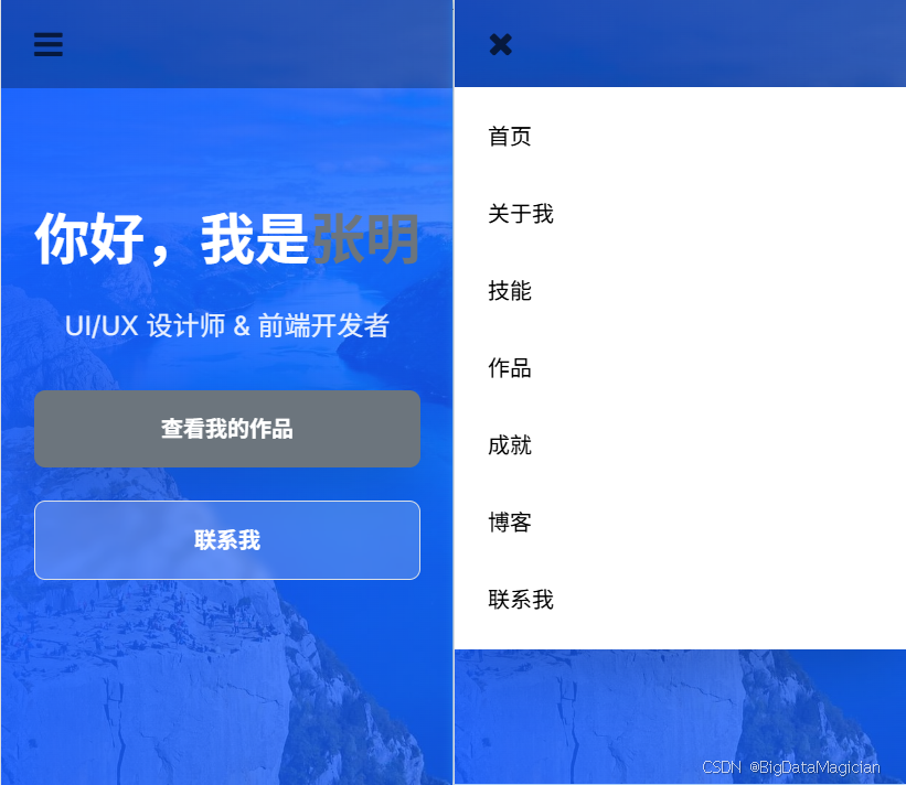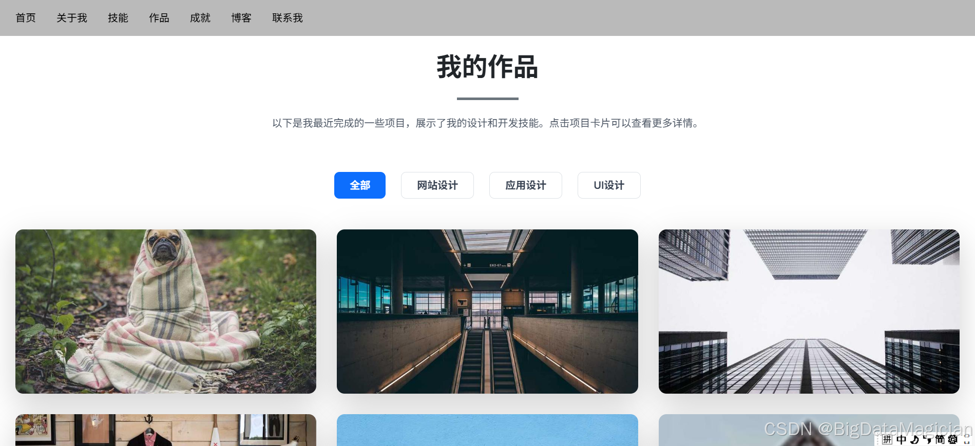 本文介绍了一个响应式个人作品集网站的开发实践,采用HTML5、CSS3和JavaScript技术栈,结合Tailwind CSS和Bootstrap框架实现。项目包含8个核心模块:多终端适配导航栏、沉浸式首页、专业技能展示、作品分类筛选、时间轴成就展示、博客文章及联系表单。通过动态进度条、悬停动效、网格布局等技术增强交互体验,并实现PC端与移动端的完美适配。项目成果展示了包括UI/UX设计作品、开发技能图谱、职业经历等专业内容,体现了前端开发与设计能力的有机结合。