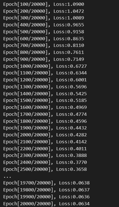 print(f"Epoch[{epoch+1}/{num_epochs}], Loss:{loss.item():.4f}")