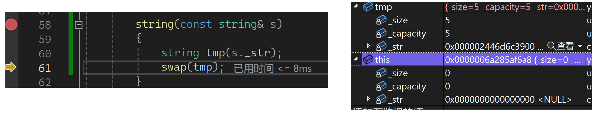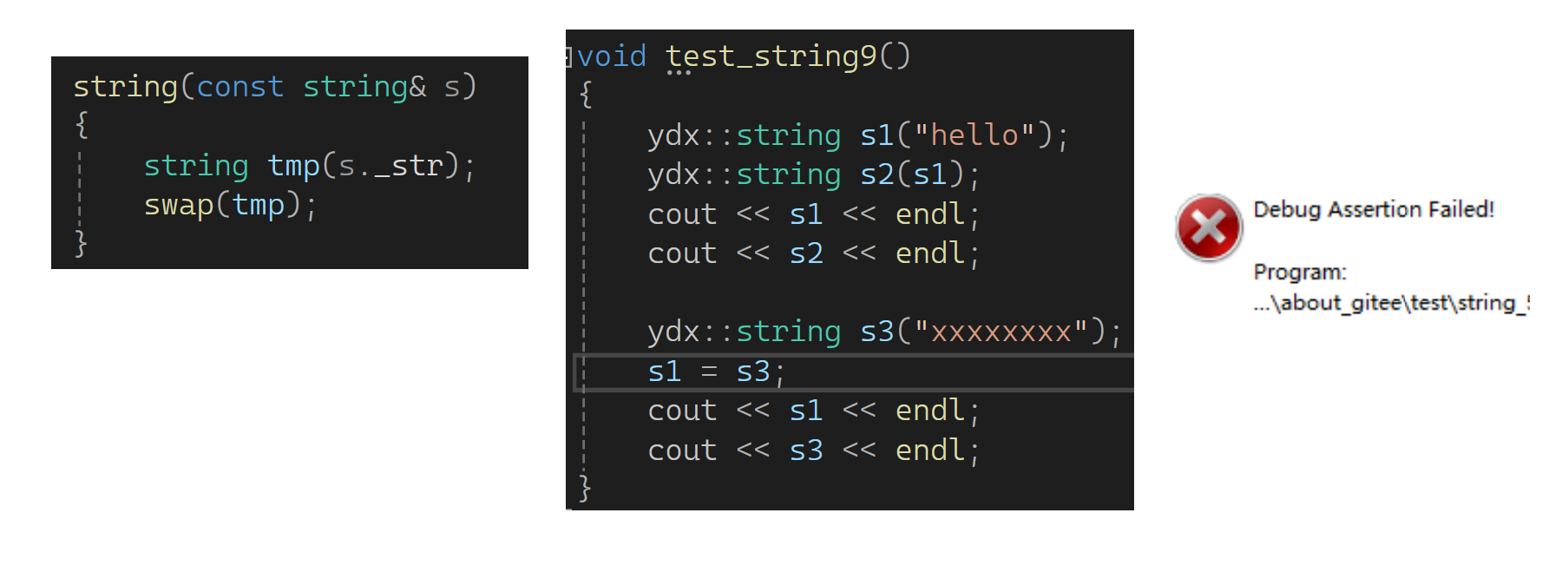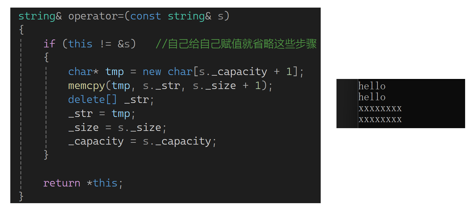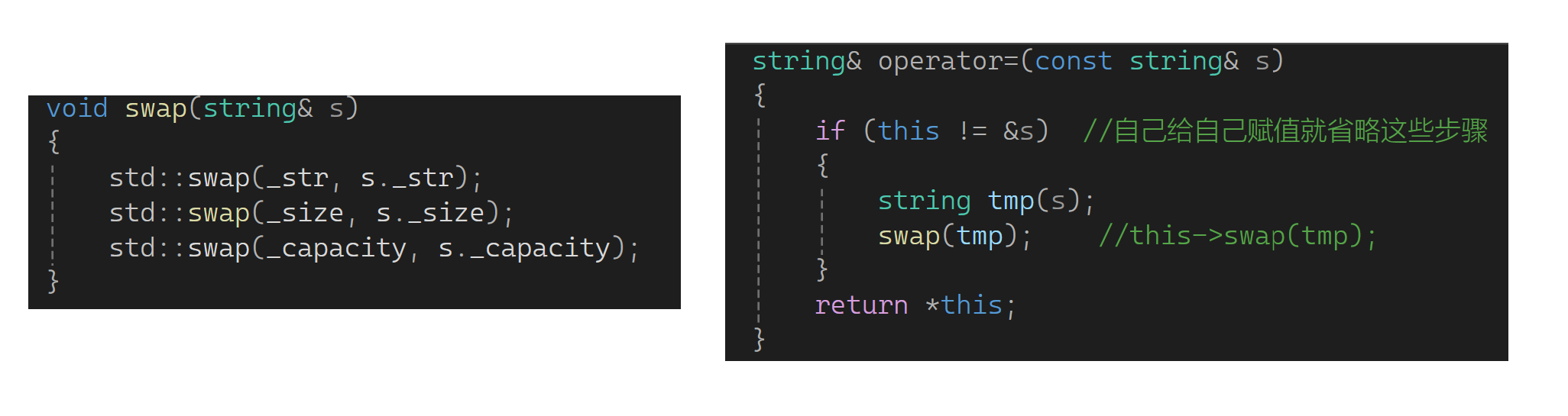有时候可能会像上面左图这样传参,如把s1传给了s。其实不愿意这样传,因为会调拷贝构造,所以最好加引用,不改变加const。现在用右边这样实现: