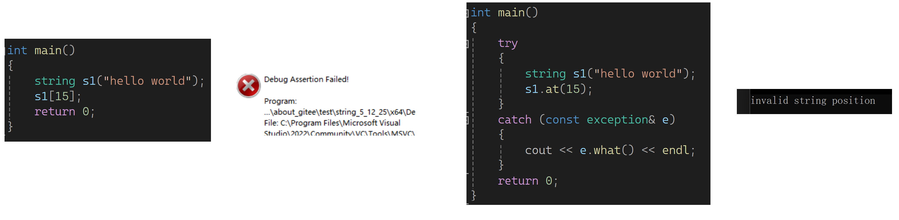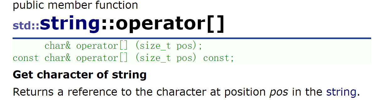 通过[]可以很方便的像数组一样使用,返回pos位置的字符,也是可以通过下标进行修改的,如果是const对象就不能修改,它们之间又构成了函数重载。这里还有一个at: