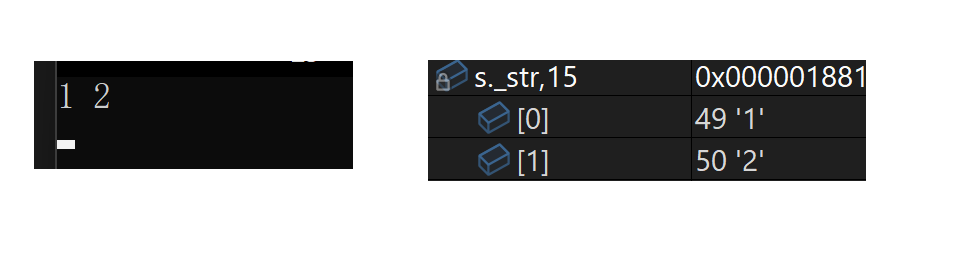 上图反应了两种方式效果是一样的,不一样的地方是第一种方式是直接打印,第二种方式是一个字符一个字符打印,第二种在控制上更自由。我们说过string底层会开数组去存储,去堆上new一个数组,为了和C语言更好的配合存完数据后,最后会添加一个'\0',那s1[i]访问时最后包含'\0'吗?可以结合size来看看: