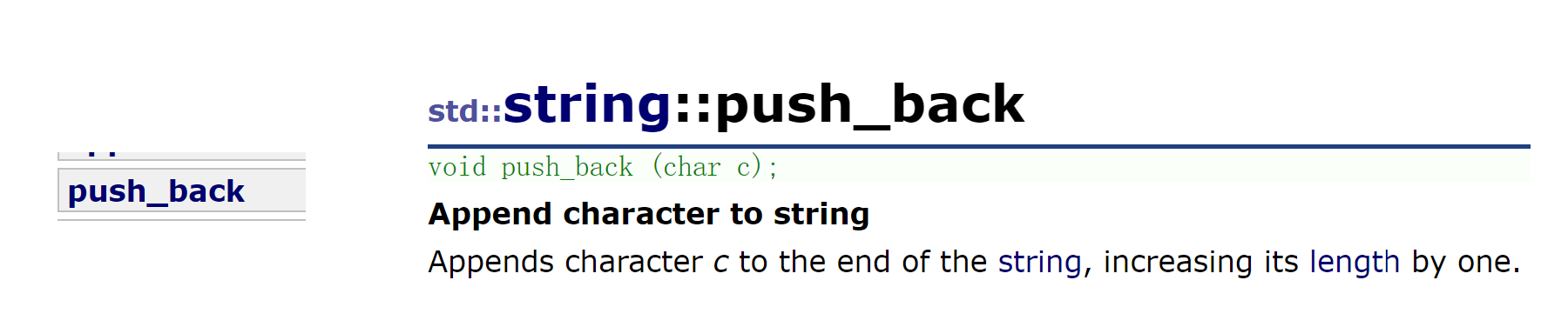 可从文档中看到有push_back,它的功能是追加一个字符到字符串结尾。那再想插入一个world呢?