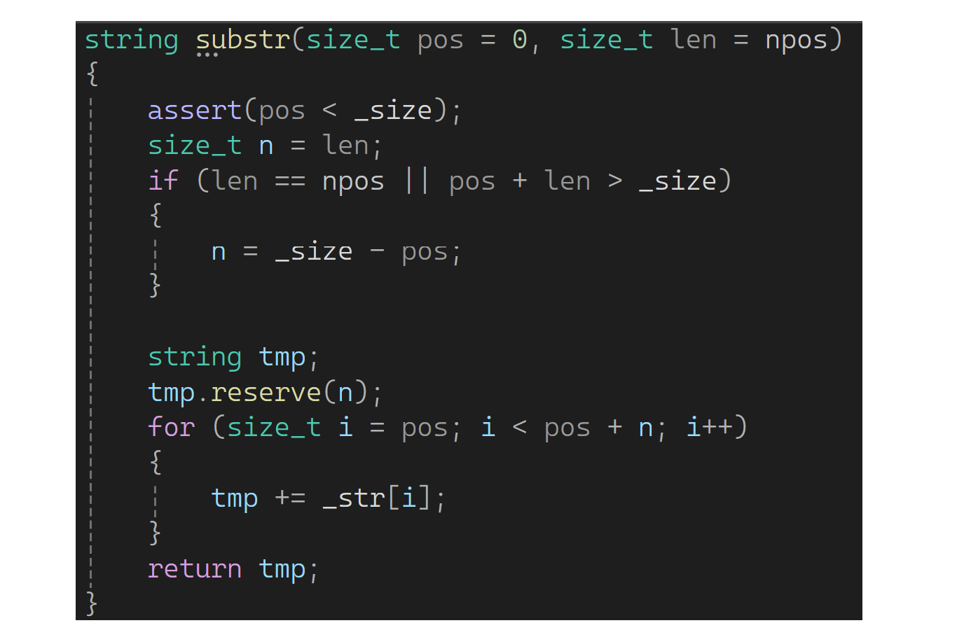 这样可读性更强了。继续看刚才的,3这里有个len=npos,这是个缺省参数,那npos是什么意思呢?