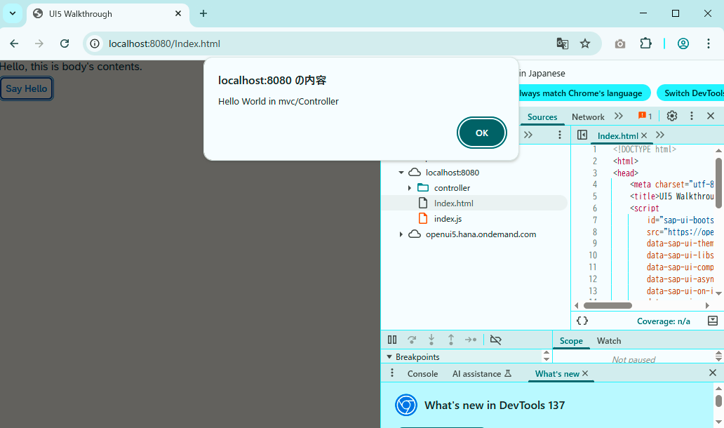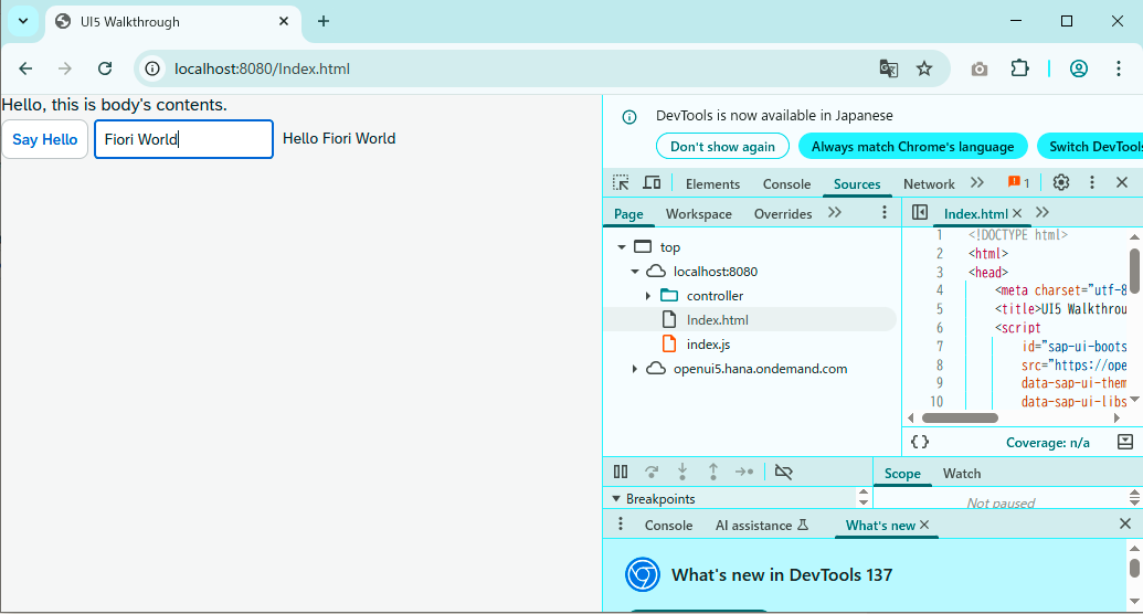 - Hello, this is body's contents. This is sap/m/Text Control - Hello World