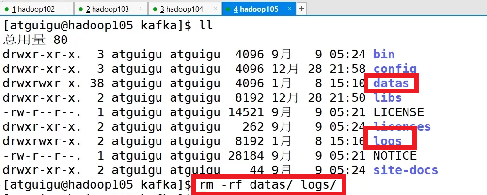 ①、关闭hadoop104(克隆的方式,不需重新安装JDK,Kafka),开启hadoop105(修改IP)