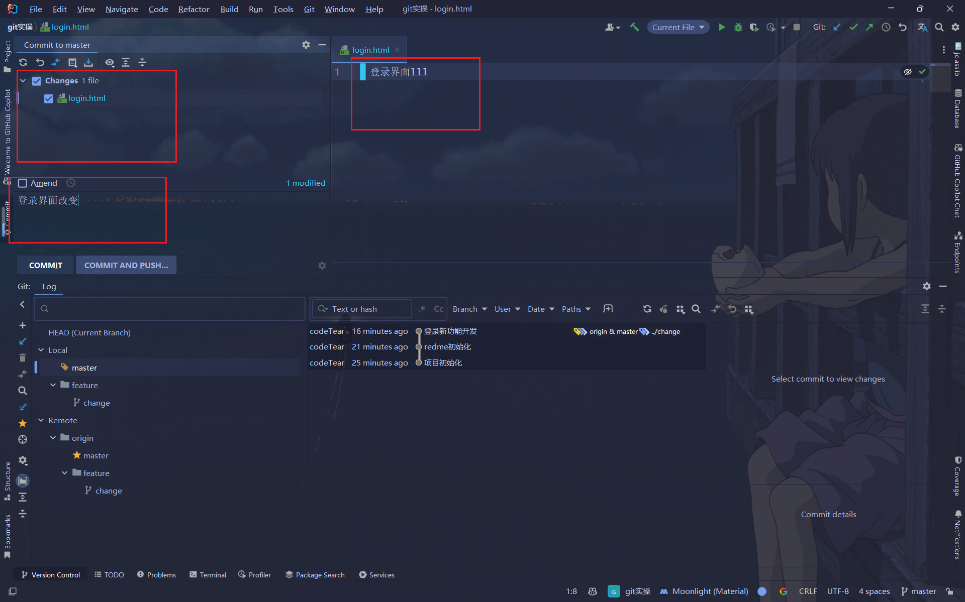 2 在feature/change分支修改login.html文件并且提交