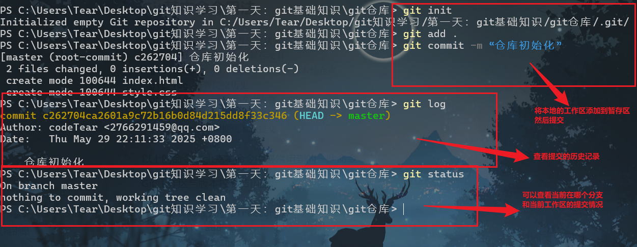 git init # 初始化本地仓库