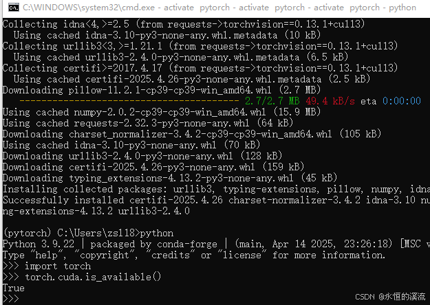 (4)pip install torch-1.12.1+cu113-cp39-cp39-win_amd64.whl