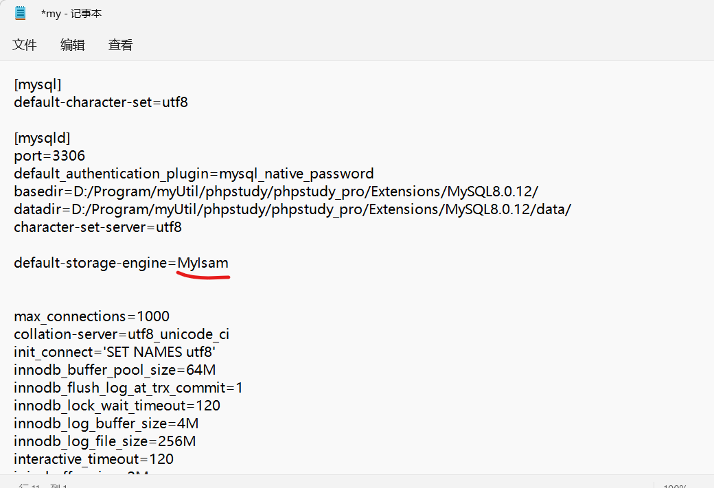后面查看了mysql根目录的配置文件,发现自己用的mysql是Mylsam找到 defult-storage-engine
