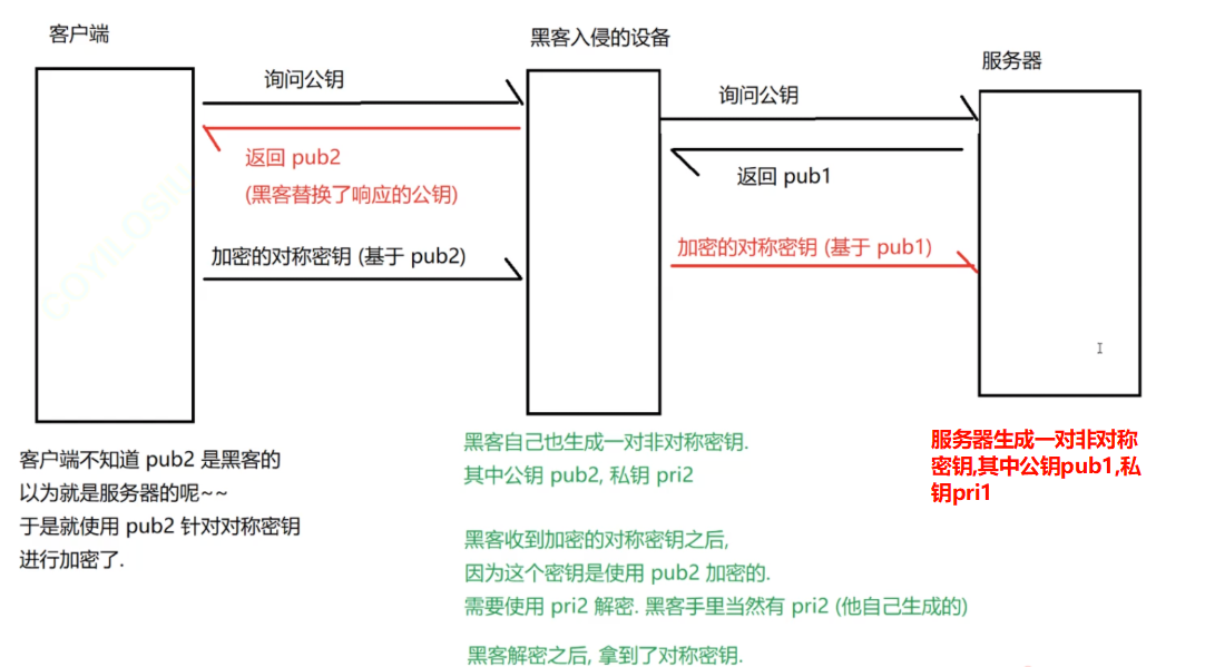 比如黑客可以当双面间谍,假扮先服务器向客户端发消息,然后假扮服务器向客户端发消息