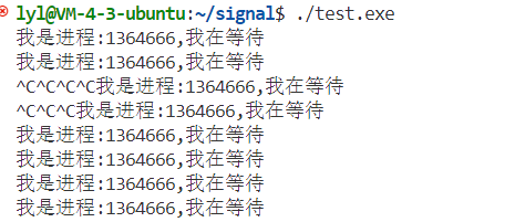 std::cout<<"我是进程:"<<getpid()<<",我自己给自己发送了"<<signum<<"号信号"<<std::endl;