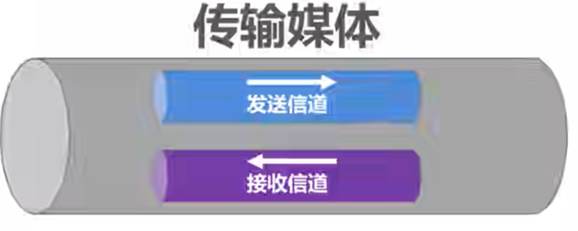 - 而对于半双工和全双工传输传输媒体中要包含两个信道,一个是发送信道,另一个是接收信道;