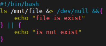 "$target" = "exit" \] \&\& { echo bye exit 0 } # 1. 检测变量是否为空 \[ -z "$target" \] \&\& { echo "错误:变量不能为空" target } # 2. 检测文件/目录是否存在 \[ -e "$target" \] \|\| { echo "错误,目录不存在" target } # 3. 判定是否是文件 \[ -f "$target" \] \&\& { echo "是个文件" target } # 4. 判定是否是目录 \[ -d "$target" \] \&\& { echo "是一个目录" target } } ACTIO 【最后要运行函数】 ****# bash file.sh**** 【sh不能运行时,bash可以运行脚本】