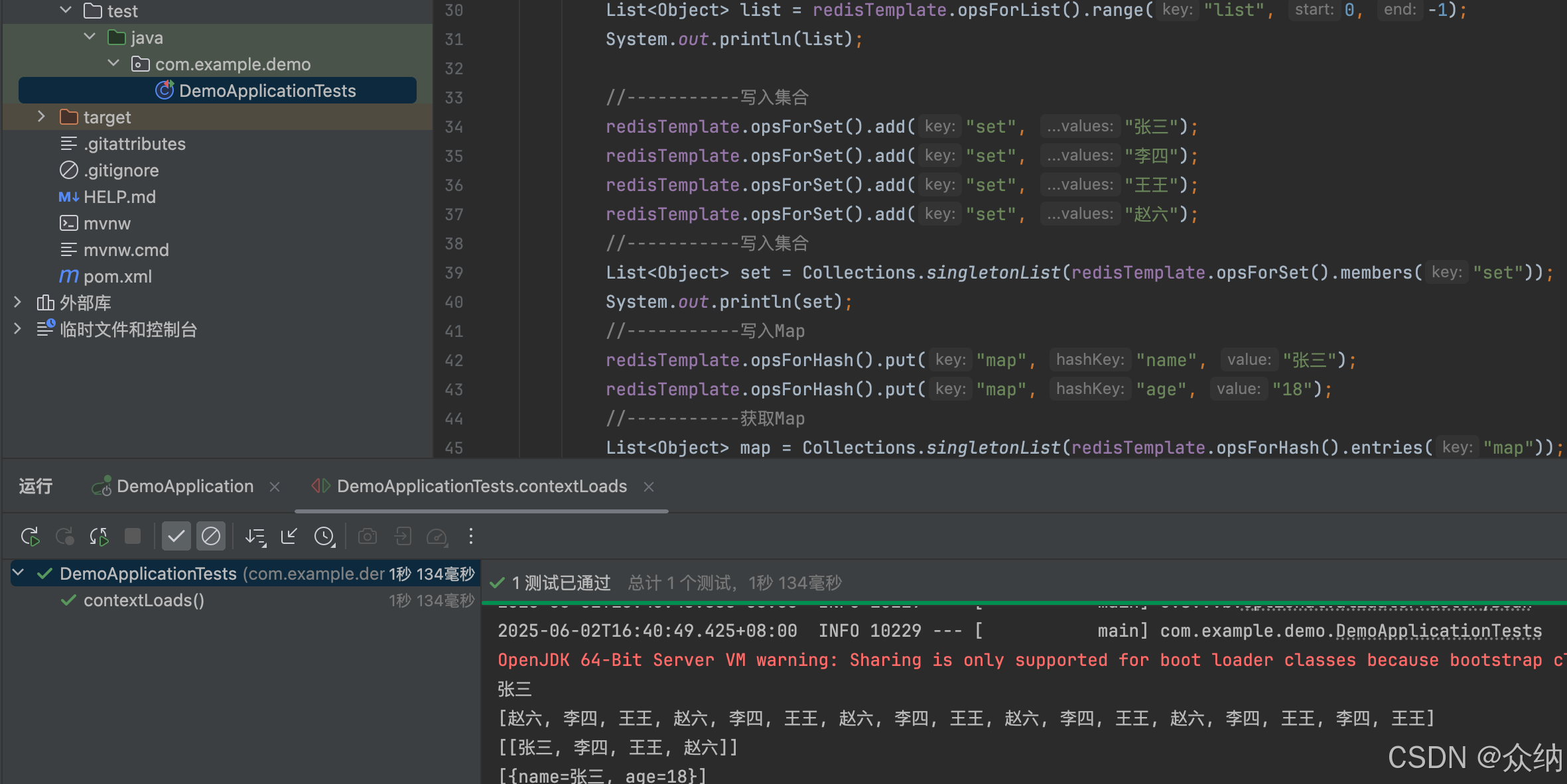 redisTemplate.opsForSet().add("set", "王王");