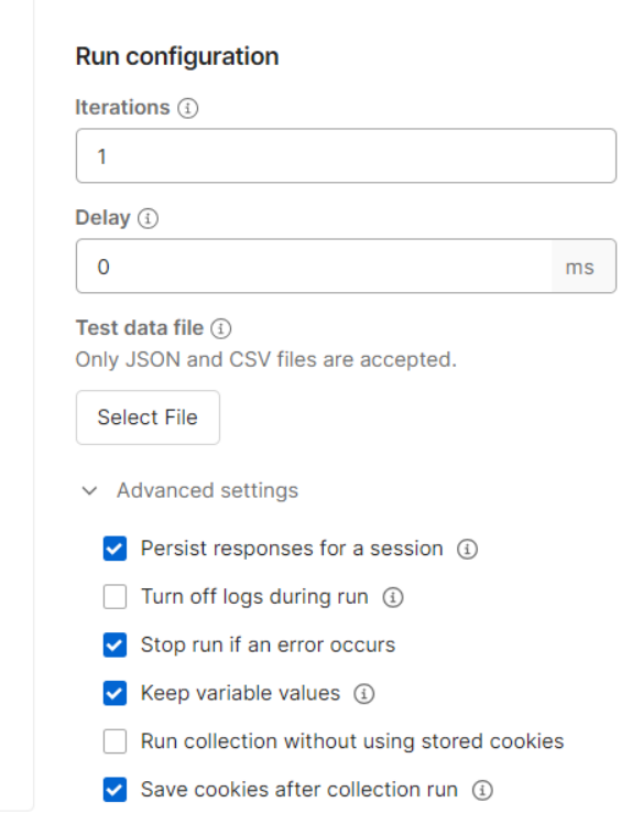 选中collection右键运行,即可编辑运行配置,其中iteration表示迭代次数,delay则是延迟时间,配置完成后点击run即可运行