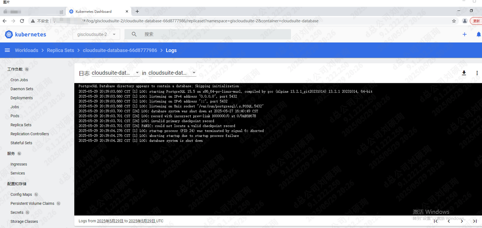 【问题原因 】cloudsuite-database 容器报错,一直在还原数据库,cloudsuite-database数据库数据异常。