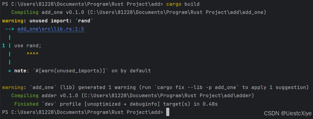 Compiling adder v0.1.0 (C:\Users\81228\Documents\Program\Rust Project\add\adder)