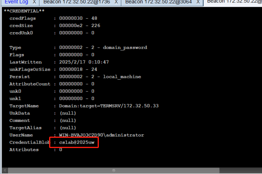 再次说明,这个凭据是因为administrator在RDP其他主机的时候,选择了记住我的凭证功能,然后在本地保留了一个凭证