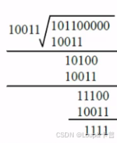 (1)在原始信息位后面添加0,假设生成多项式的阶位r,则在原始信息位后添加r个0,本题中,G(X)阶位4,则在原始信息串后加4个0,得到的新串为101100000,作为被除数