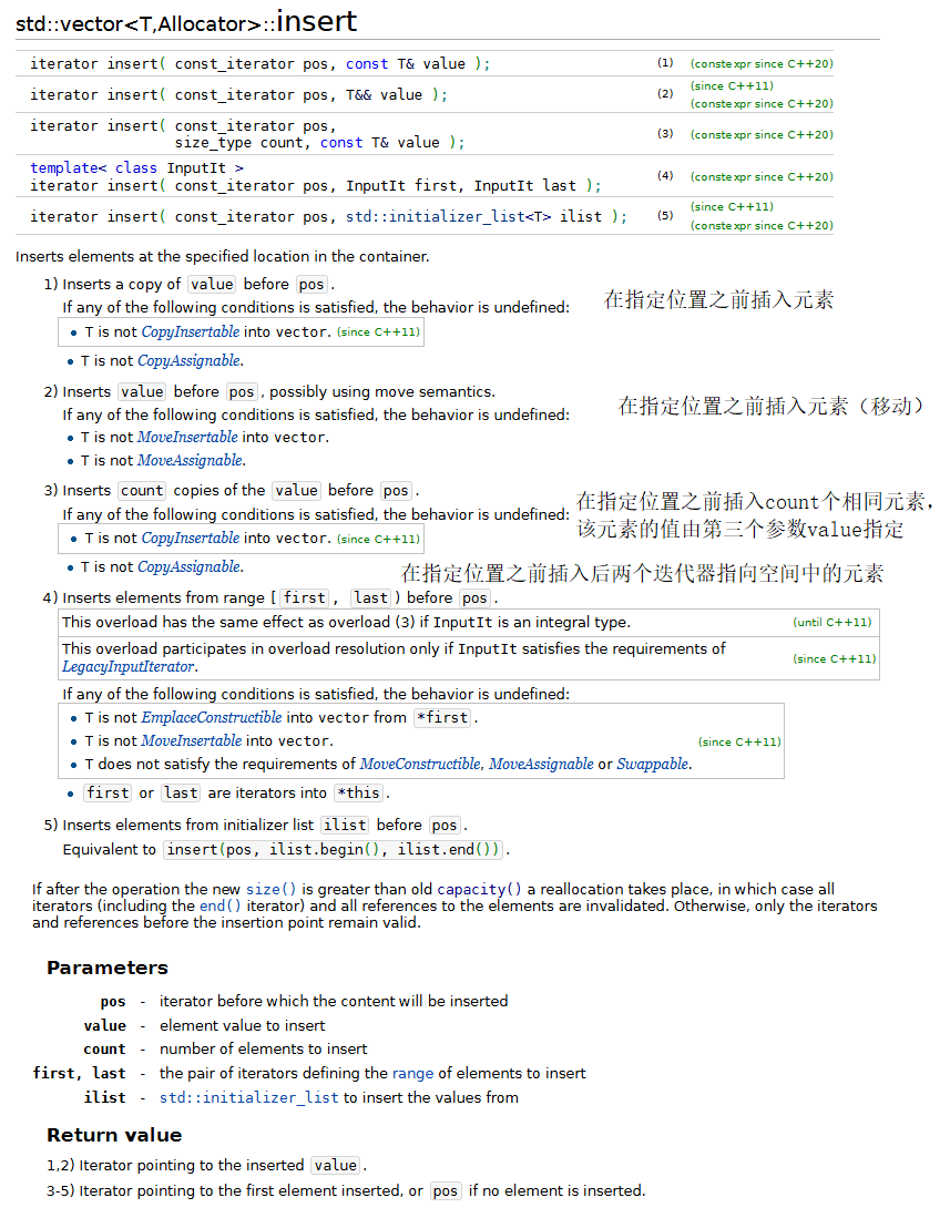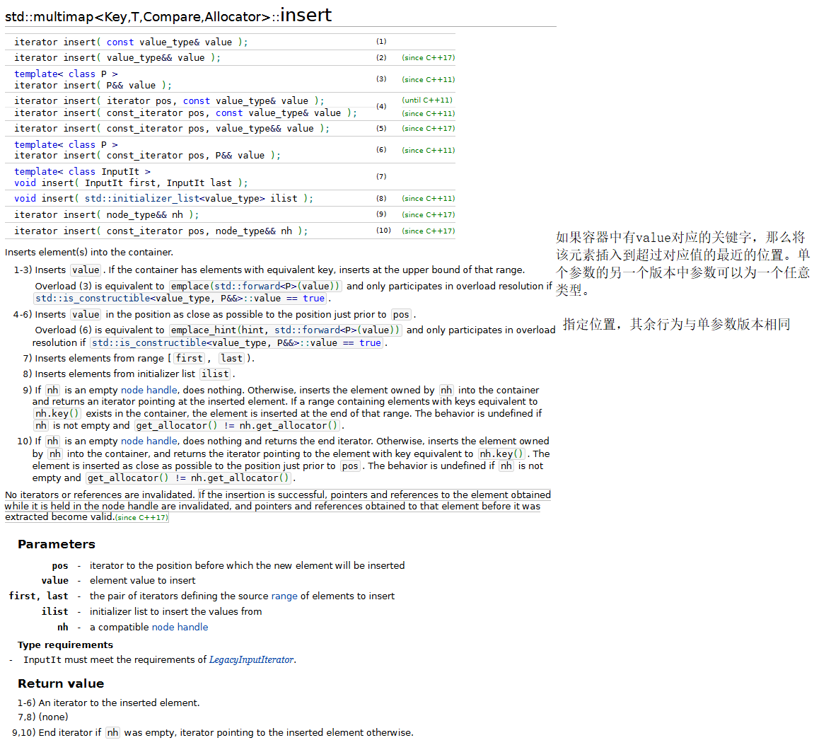 | 转移构造函数 | C++11中的新内容,将一个已经存在容器中的元素转移到同类型的新容器中。转移构造函数避免了复制作为参数传入容器的每个元素的开销 |